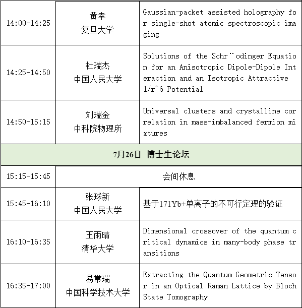 7月25日注册,26日博士生论坛,27-31日正式会议