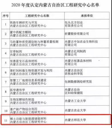 本网讯 日前,内蒙古自治区发展和改革委员会公布了内蒙古自治区工程研究中心名单,全区获批11家。我校依托yl6776永利集团申报的稀土功能与新能源储能材料内蒙古自治区工程研究中心成功获批。