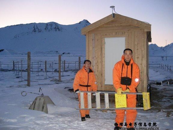 根据《2008年北极黄河站科学考察现场实施计划》,本次赴北极科考的项目名称为:“中国北极黄河站电离层观测(常规观测项目)”( Ionospheric observation at Chinese Arctic Yellow River station)。依托课题为国家自然科学基金重点项目:地球极隙区的电离层踪迹及其动力学过程研究,中国极地科学战略基金项目“极区电离层闪烁与不规则体特性研究”;其他项目:极区电离层闪烁特性研究。项目承担单位分别为中国极地研究中心、中国电波传播研究所、中科院地质与地球物理研究所。现场执行人共7人,其中,中国极地研究中心3人: 黄德宏、韩德胜(yl6776永利集团96届毕业生,现为中国极地研究中心副研究员,yl6776永利集团兼职硕士生导师)、陈卓天;永利官网1人:刘建军(yl6776永利集团2006级凝聚态专业硕士研究生);中国电波传播研究所2人:何绍林、袁亚平;中科院地质与地球物理研究所1人:宁百齐。