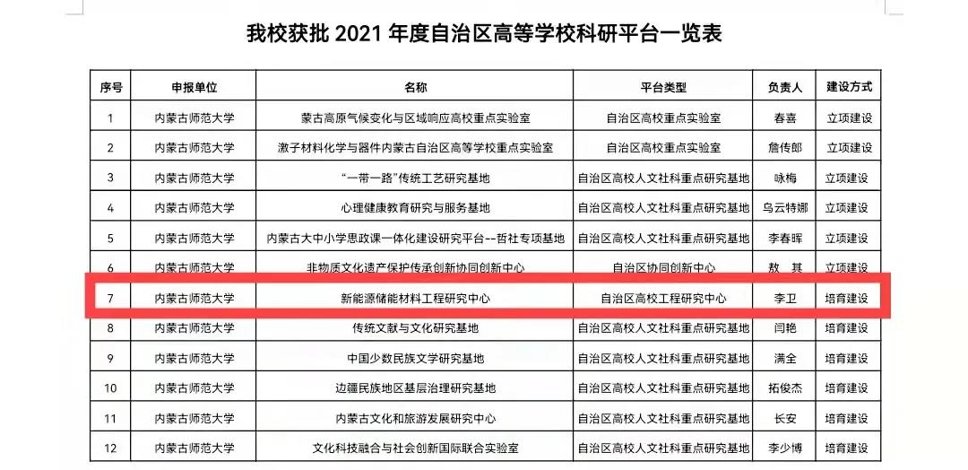 学院党委副书记兼副院长张伟《“五个认同”视域下的内蒙古高校大学生中华民族共同体意识教育研究》思政专项;武晓霞博士《镍钴基高温合金面缺陷与力学性质的第一性原理研究》自然科学重点项目。李卫博士“新能源储能材料工程研究中心”(自治区高校工程研究中心)培育建设。