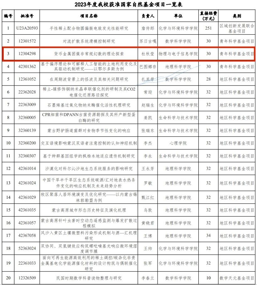 近日,2023年国家自然科学基金项目评审结果正式揭晓。我院杜秋莹老师主持的《货币金属团簇非常规幻数的理论探索》获批青年科学基金项目。