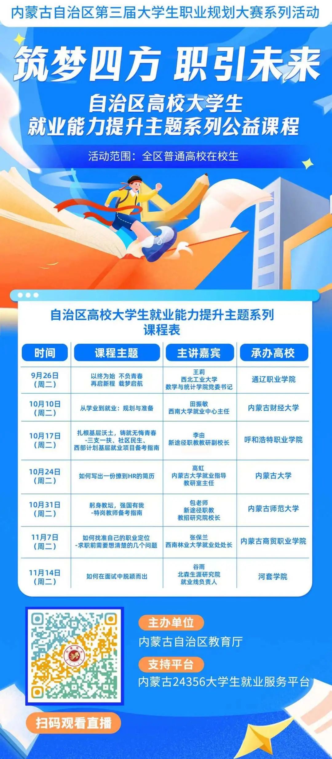 【就业秋招】内蒙古自治区高校大学生就业能力提升主题系列公益课程开课啦