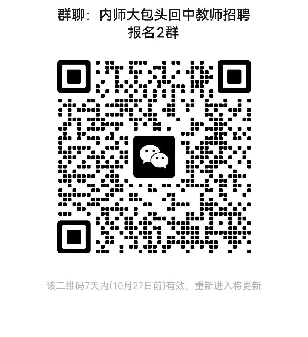 2.时间:请符合招聘条件的应聘人员于10月25日(周三)晚上7点前扫描下方二维码如实报名提交个人基本信息,否则无法进校应聘。