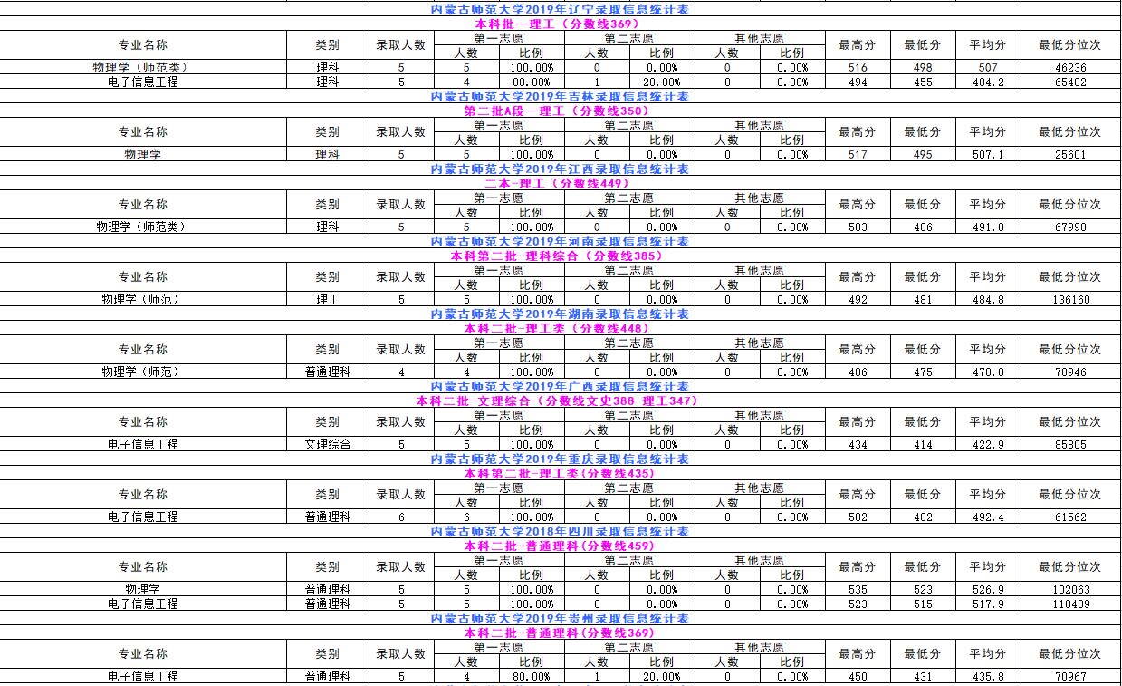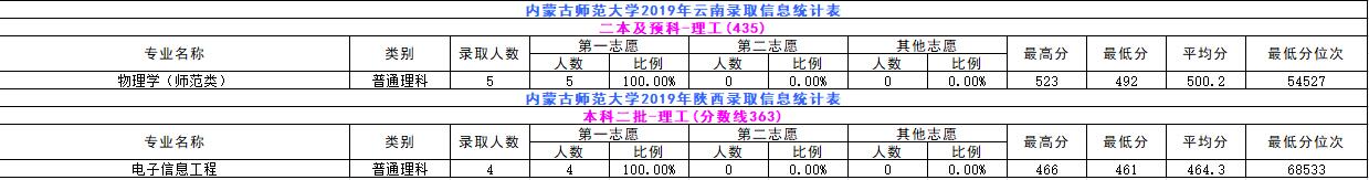 2019年录取信息
