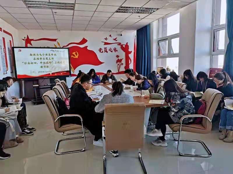 11月15日下午,学院学生党支部“不忘初心,牢记使命”主题教育读书班第五期在理工楼904B举行,学院党总支委员、实验中心兼综合办主任张天臣、辅导员王乐老师,本科生支部全体党员、研究生支部部分党员参加学习,本次会议由学生支部负责人林基哲主持,会议传达学习了党的十九届四中全会精神以及学习研讨《习近平关于“不忘初心,牢记使命”论述摘编》第四章内容节选。