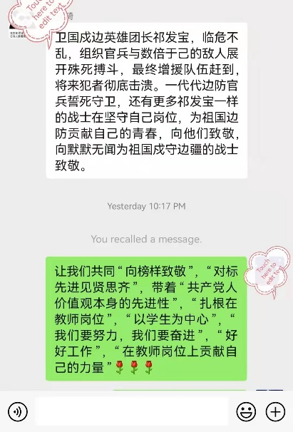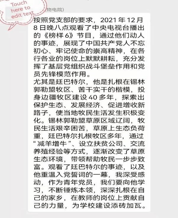 不忘初心、牢记使命,砥砺奋进、再创辉煌!让我们共同“向榜样致敬”,“对标先进见贤思齐”,带着“共产党人价值观本身的先进性”,“扎根在教师岗位”,“以学生为中心”,“我们要努力,我们要奋进”,“好好工作”,“在教师岗位上贡献自己的力量”!