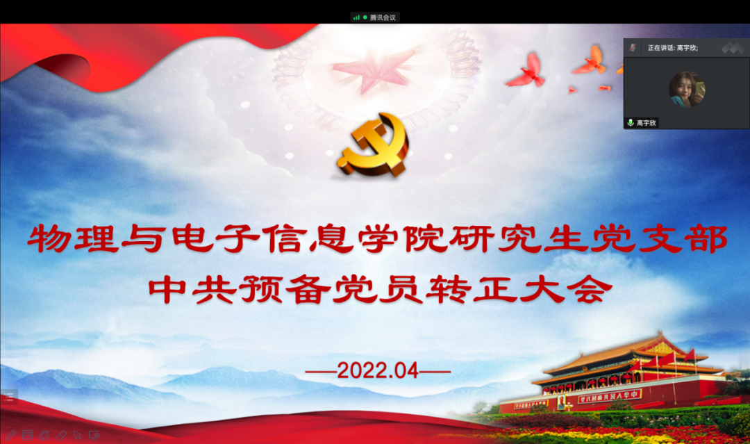 我院研究生党支部于4月19日在线上召开中共预备党员转正大会,大会由支部书记木其尔主持,讨论并表决了关于高宇欣,王华琛,王欣宁三名同志转为正式党员的相关事宜。