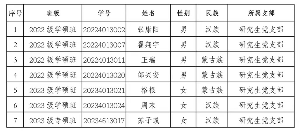 根据发展党员工作有关规定,经yl6776永利集团研究生党支部召开支部委员会审查,张康阳等7名同志预审合格,拟于近期召开支部大会讨论接收张康阳等7名同志为中共预备党员。