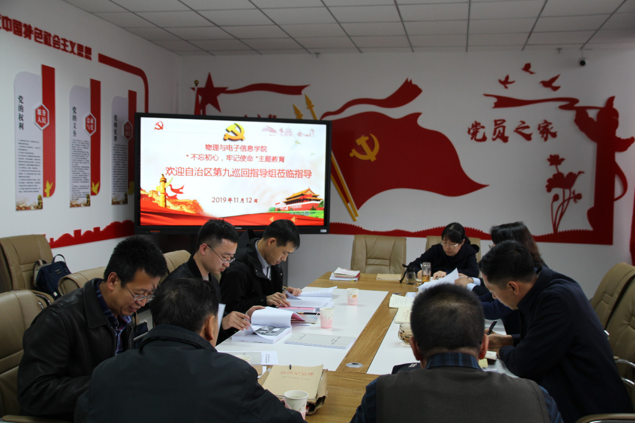 11月12日下午,自治区“不忘初心,牢记使命”主题教育巡回指导组一行莅临我院调研指导“不忘初心,牢记使命”主题教育工作,学校主题教育第六指导组、校党委组织部相关负责人出席,学院领导、总支委员、支部书记参加调研,党总支书记刘美玲主持会议。