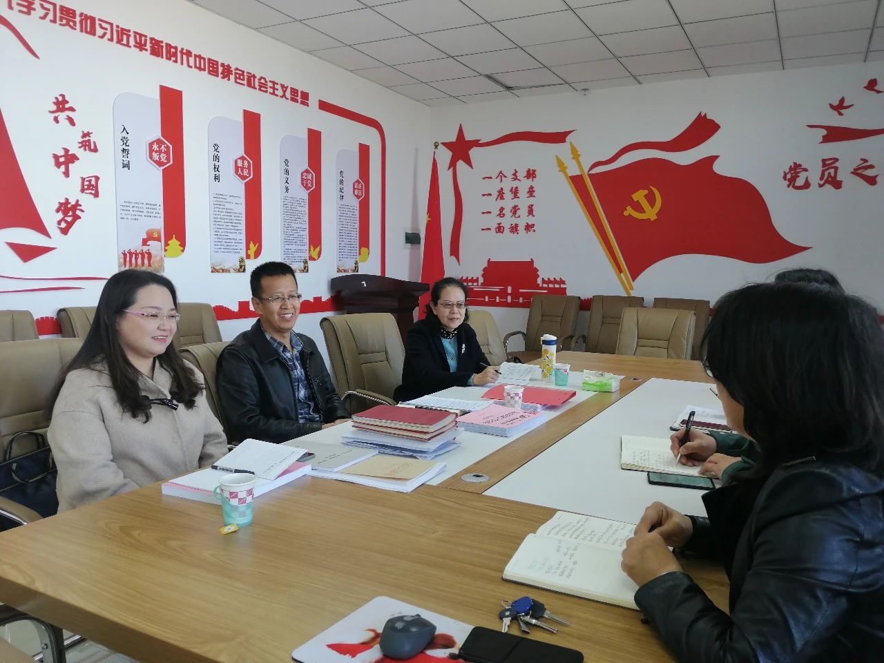 调研会上,学院党委书记刘美玲围绕学院党员发展工作、“双带头人”教师党支部书记工作、样板党支部工作三方面逐一阐释,全面总结各项工作进展情况和工作成果,同时也指出学院党建工作面临的现状与困境。学院党委副书记兼副院长张伟就学生党员培养和发展、“三会一课”开展情况做了汇报。