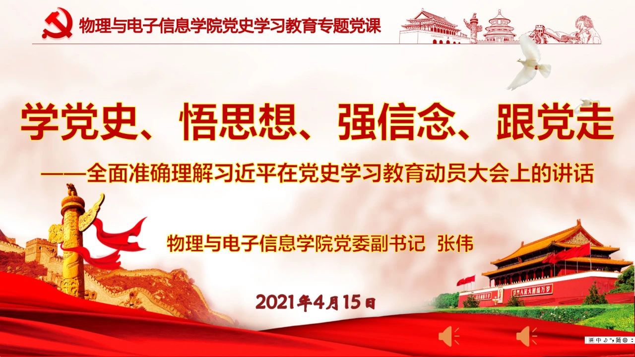 会议首先传达了校党委副书记高云峰主持召开的党史学习教育推进会精神,对学校全面推进党史学习教育工作安排部署做了说明。刘美玲指出,学院下一步将按照学校党史学习教育领导小组研究制定并下发的党史学习教育任务清单,逐一明确时间节点及目标任务,确保学习教育与中心工作两手抓、两不误。随后,在学院党委副书记张伟的领学下,与会全体党员认真学习了习近平总书记在党史学习教育动员大会上的重要讲话。大家纷纷表示,习近平总书记重要讲话高屋建瓴、视野宏大、思想深邃,要牢记在心、经常重温。