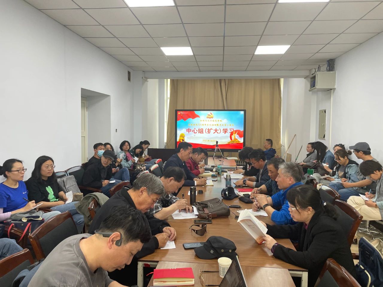 5月13下午,我院党委于赛罕校区会议室召开党史学习教育中心组(扩大)学习会议。学院党委书记刘美玲,副院长曹永军,副书记兼副院长张伟,副院长那日苏出席,学院环节干部,各系、部、室负责人,各党支部书记参加。会议由党委书记刘美玲主持。