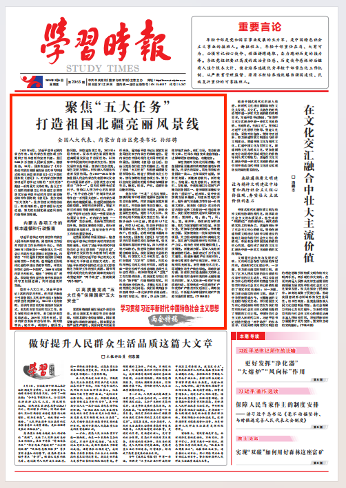 【中心组学习】《学习时报》刊发全国人大代表、内蒙古自治区党委书记孙绍骋文章《聚焦“五大任务” 打造祖国北疆亮丽风景线》