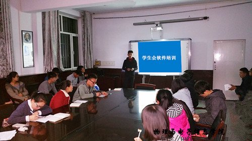 本网快讯 为不断加强我院学生会队伍专业化建设,我院学生会于2014年11月5日晚在物电楼一楼会议室召开办公软件培训讲座。我院学生会副主席那松宝音担任主讲人,为2014届学生会全体部员进行了word、excel、ppt、photoshop、绘声绘影等相关办公和专业软件的耐心细致讲解;通过培训,同学们普遍反应学到了很多实用的东西,也解决了很多之前遇到的问题;相信此次讲座 对提升我院学生会队伍建设的专业化、规范化水平必将提供基础保证和有益实践。