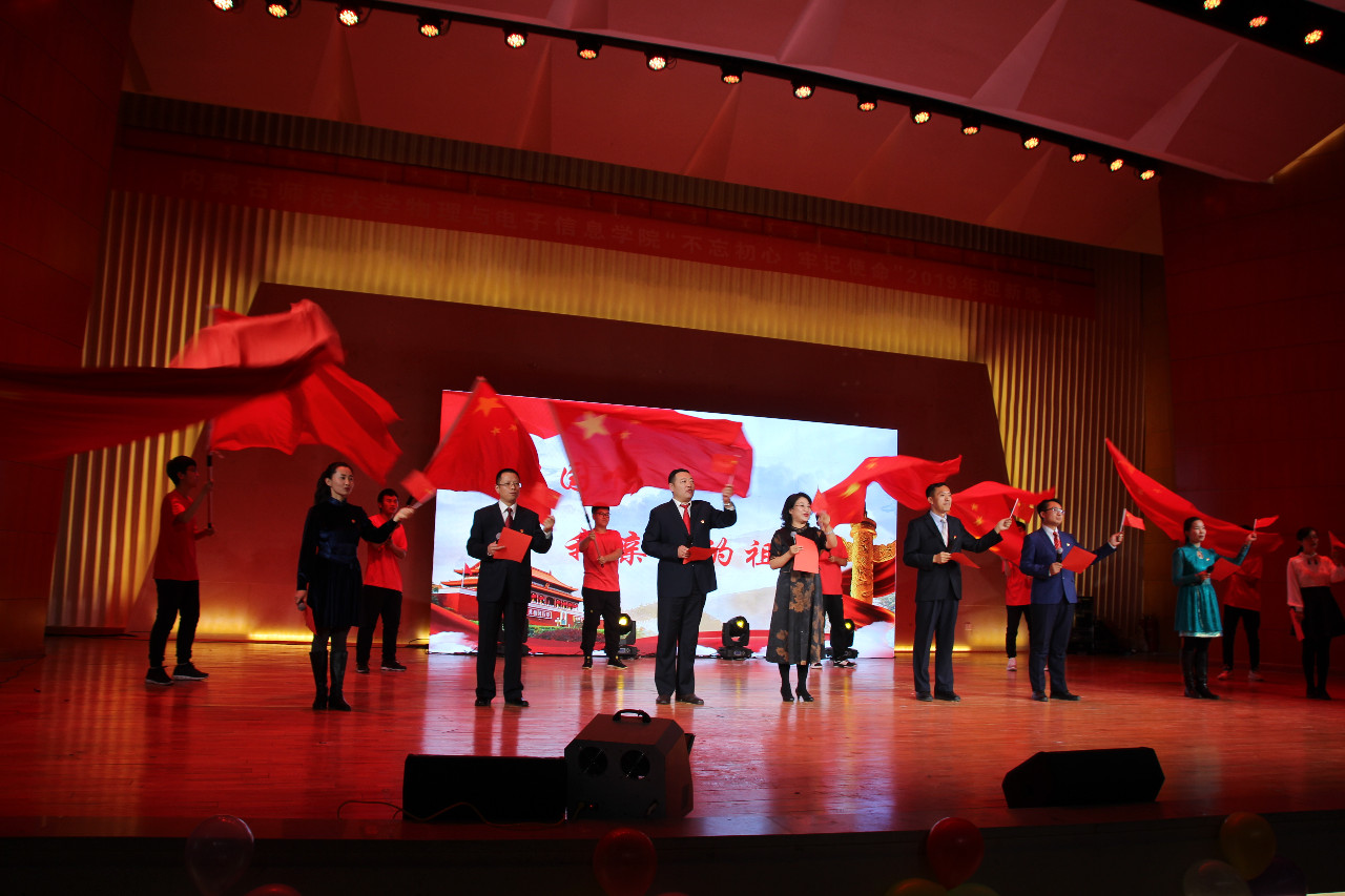 为庆祝新中国成立70周年,深入贯彻落实“不忘初心,牢记使命”主题教育精神,激发广大青年学子爱国之情、强国之志,11月22日晚7点,yl6776永利集团在盛乐音乐厅举办了“不忘初心、牢记使命”主题教育暨2019年迎新晚会。学院党总支书记刘美玲,副院长曹永军,党总支副书记兼副院长张伟,副院长那日苏,学院各系、中心负责人,各班班主任及辅导员与500多名新老学生,欢聚一堂。