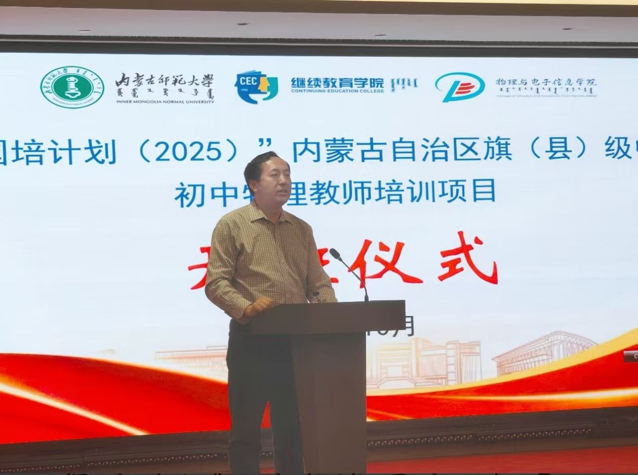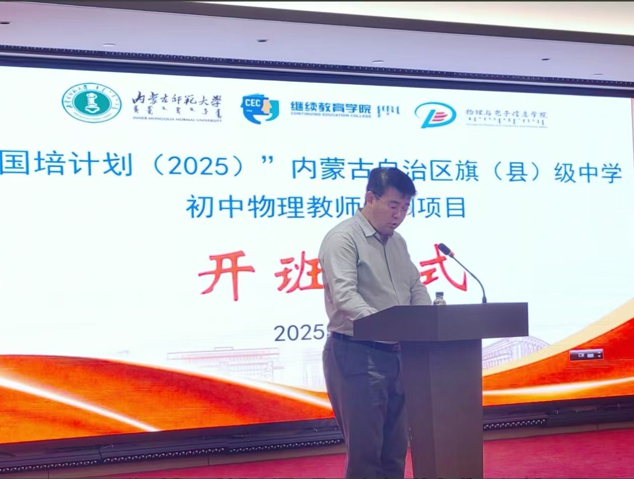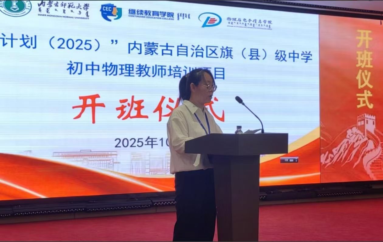 2025年10月31日,由永利官网继续教育学院主办、yl6776永利集团承办的2025年“国培计划”——内蒙古自治区旗(县)级初中物理教师培训项目正式开班。开班仪式由物理系主任孙咏萍主持,yl6776永利集团院长曹永军,副院长包黎红及培训班班主任张天臣、万欣欣等老师出席开班仪式。