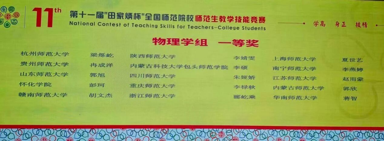 该项赛事由田家炳基金会冠名赞助,浙江师范大学承办,并得到全国地方高等师范院校教务处长联席会议的专业指导,是国内师范生教学技能竞赛中层次最高、规模最大作为田家炳基金会冠名支持的全国性师范教育权威赛事。“田家炳杯”以交流培养经验、提升教学能力、储备教育人才为核心使命,本届大赛吸引全国289所师范院校参与初赛,经严格评审,44名物理学优秀选手脱颖而出晋级决赛,在浙江师范大学的校园内展开了一场精彩纷呈的教学技艺交锋。郭欣同学作为永利官网物理学科代表参赛,比赛现场涵盖教学设计、多媒体课件制作、即席讲演、模拟上课、板书等环节,她积极备赛,激情饱满,充分展现了我校师范生的扎实素养与专业风采。