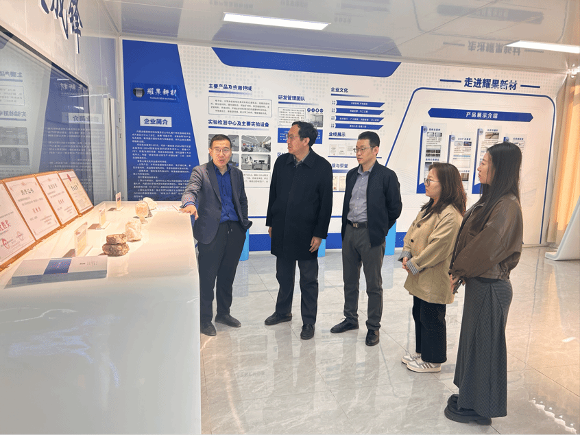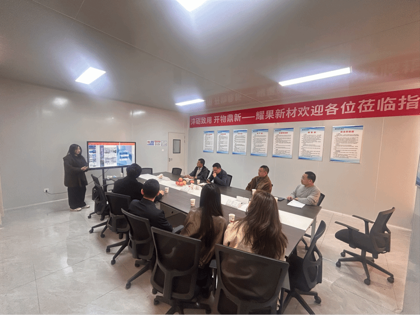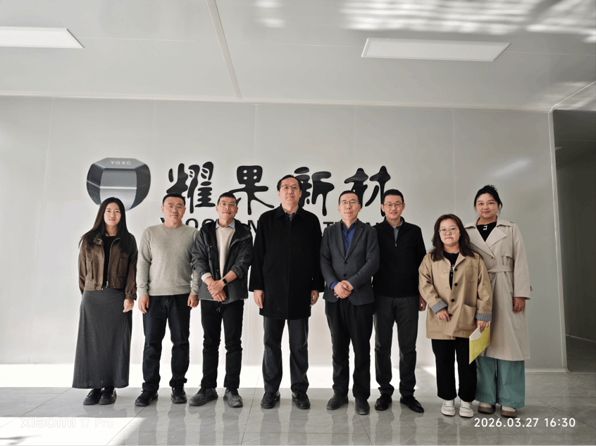 耀果新材料有限责任公司总经理高昌轩、常务副总经理高文学及相关工作人员与我院师生进行座谈交流。座谈会上,学院介绍了学科特色与人才培养优势,企业表达了吸纳人才的诚意,双方围绕联合培养、人才招聘、校企科研共创及材料融合模式等内容展开交流。