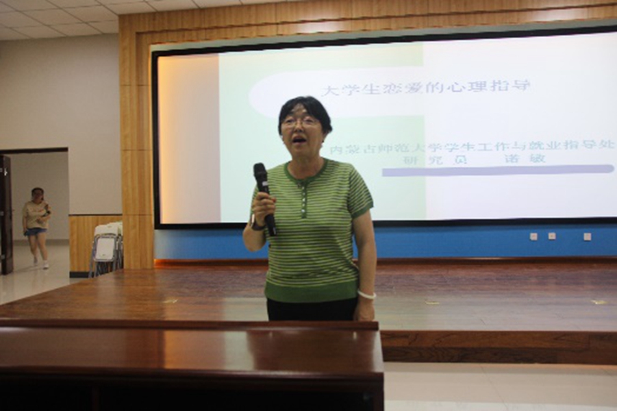为增强大学生心理素质,树立正确的恋爱观,并对择偶有基本标准和评判。5月25日,我院在盛乐校区学生事务中心一楼报告厅举行大学生恋爱心理指导讲座。学校宣讲团诺敏老师担任主讲,辅导员王乐主持讲座,我院全体大一、大二学生聆听讲座。