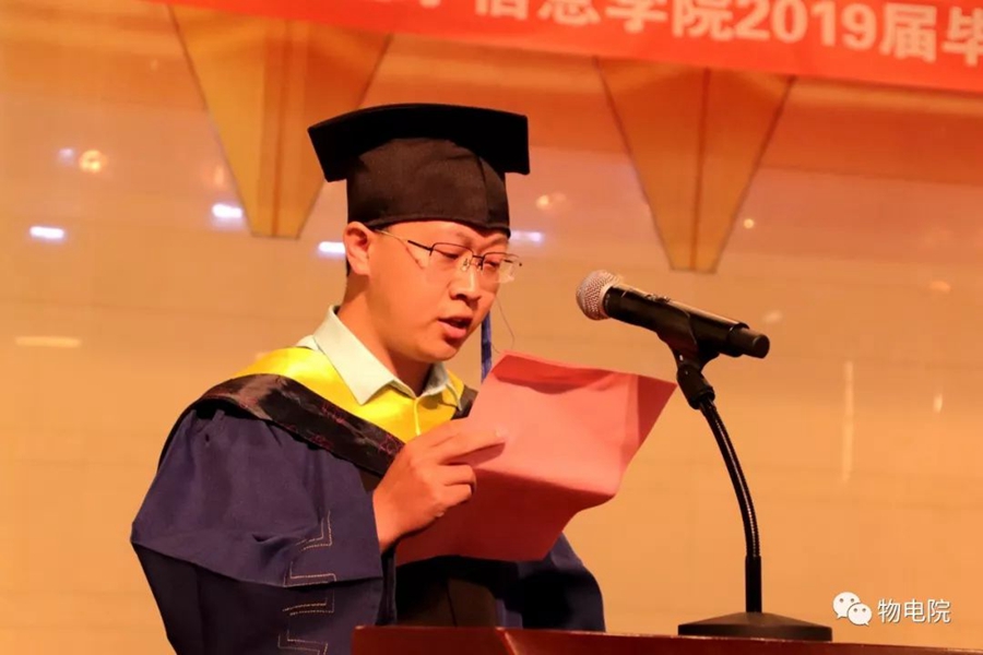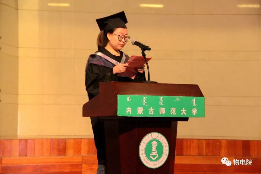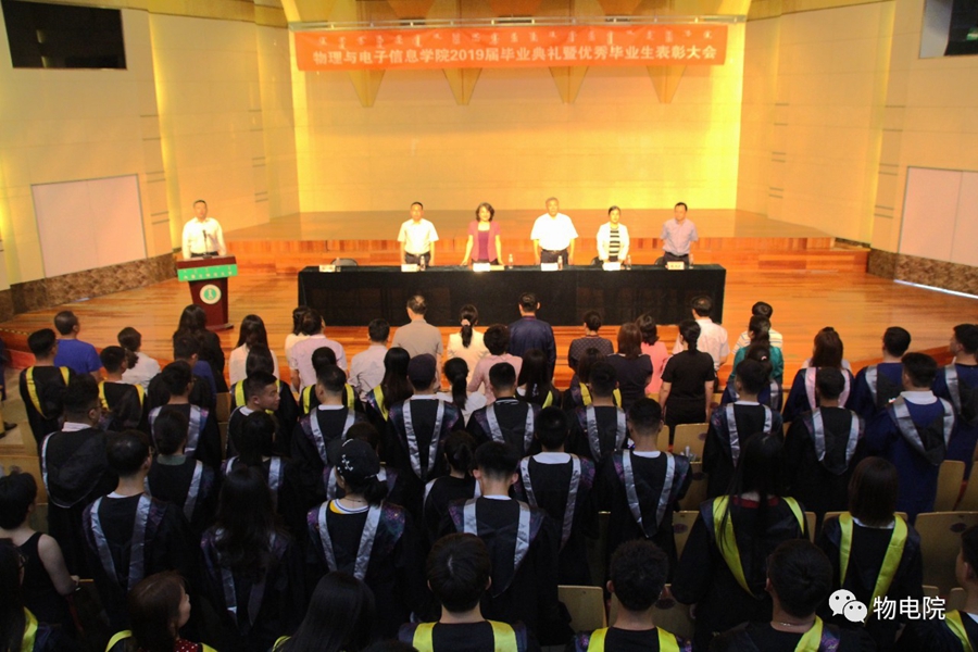 6月14日,我院于赛罕校区音乐厅举办yl6776永利集团2019届毕业典礼暨优秀毕业生表彰大会。学院党总支书记刘美玲、硕士生导师吉日嘎拉、副书记兼副院长张伟、电子系主任张丽娜、实践创新部主任梁学军、综合办公室主任张天臣、毕业班主任、任课教师及2019届180余名毕业生参加典礼,大会由张伟书记主持。 在雄壮的国歌声中,典礼正式开始。张伟书记宣读了《2019届本科、研究生毕业生基本情况及升学情况报告》,对毕业生的就业、升学情况进行了详细全面的说明。随后,学就办王乐老师宣读《2018—2019学年“全区普通高校优秀大学毕业生”名单》《yl6776永利集团2019届“优秀毕业生”“十佳毕业生”和“优秀班集体”名单》。颁奖仪式上,受表彰毕业生及班级代表上台领取奖状奖杯,颁奖嘉宾刘美玲书记等也对受表彰同学致以真诚的祝福。毕业季 接下来由本科毕业生代表、2015级物理汉班李新蕊同学、硕士毕业代表、2016级材料物理与化学专业贺勇同学分别发言。他们在发言中表达了对老师们辛勤付出的感谢、对同学间情谊的不舍与留恋,同时也希望学院在今后的日子里能够越办越好,为祖国培养更多栋梁之才。 最后学院党总支书记,硕士生导师刘美玲副教授发表讲话,她在讲话中谈到:你们不仅是学院发展的见证者,也是推进学院发展的参与者,大学时光是你们一生中最美好、最珍贵、最值得怀念的岁月,校园里留下来你们的青春豪情,留下了你们挑灯苦读、孜孜以求的奋斗足迹,留下了同窗之间、师生之间的深厚情谊,yl6776永利集团永远是你们的精神家园,希望你们常回家看看! 伴随着激昂的校歌,yl6776永利集团2019届毕业典礼暨优秀毕业生表彰大会落下帷幕。在今后的日子里,希望毕业的学子们都能拥有一个美好的未来。此去江湖瀚海,初心不改,今日一别,愿诸位繁花似锦,归来仍少年! 表彰名单 “全区普通高校优秀大学毕业生” 贺勇、赵丽娟、解君 本科“十佳毕业生” 学业之星:李新蕊、蒋奎、努恩都特 励志之星:周慧敏 文体之星:钱柏 服务之星:特日格乐、王震 道德之星:图纳拉 科技之星:游凯 创业之星:李昕彤 硕士“优秀毕业生” 刘楠楠、苏虹、红莲、廉志超 本科“优秀班集体” 15级物理蒙班 15级材料物理班 15级电子信息工程班 “考取博士生” 贺勇、赵丽娟、刘楠楠、红莲 “做出突出贡献的本科班主任” 朝克夫、田晓、阿拉塔、萨其尔、宁君 图文编辑:新闻专题部 校正稿件:姚锦明 责任审核:木其尔
