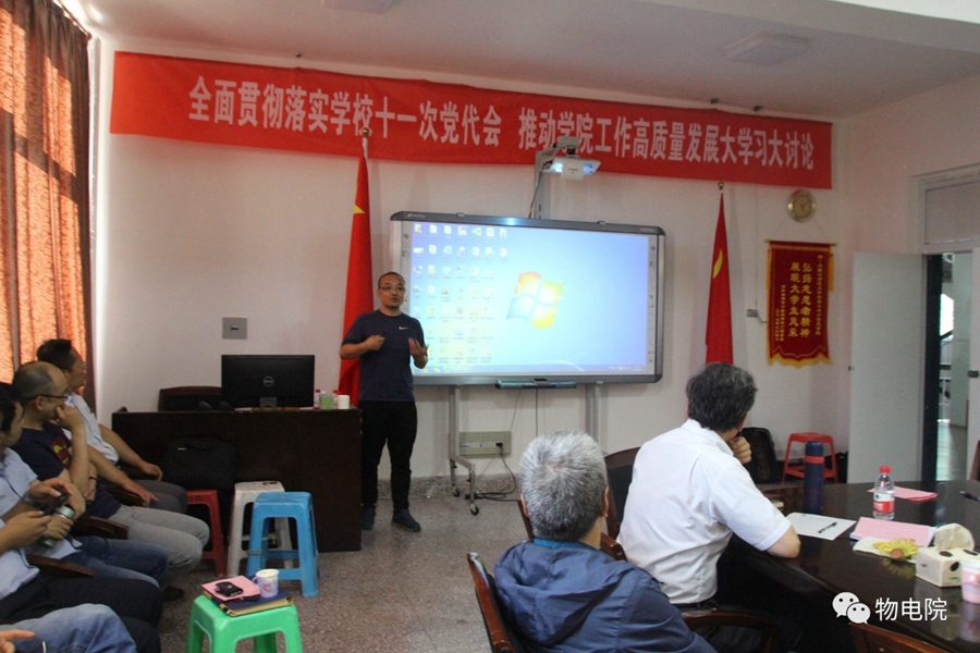 活动第一阶段进行学院博士点申报工作研讨会。首先,曹永军院长对到会的各位领导来宾表示热烈欢迎,并对五位新入职的优秀博士进行了介绍。他说,“双一流”建设、内涵式发展,是当今高等教育发展的时代主题,申博工作是推动学院当前内涵式发展的有力抓手,今天的活动目的是为了瞄准申博目标,助力学科建设,有序推进申博工作。学院党总支书记刘美玲在致辞中说,人才是实现民族振兴、赢得国际竞争主动的战略资源,欢迎新入职的博士加入学院大家庭;物电院的发展、“双一流”的建设需要你们的智慧,需要你们的智库,需要你们的智能,还需要你们的智谋。学院等待着你们大展宏图。刘书记号召全体物电人在这个大家庭中同心同德、和谐团结、共谋发展,在为学校、学院的建设贡献力量的同时,努力实现个人的成长进步。
