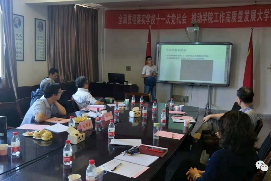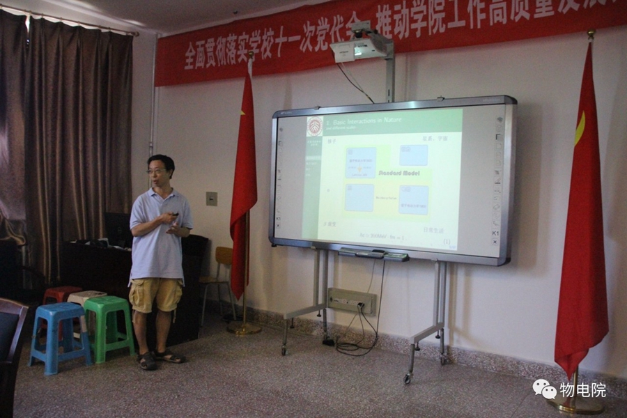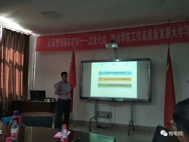 活动第二阶段进行学院迎新博士学术沙龙活动。北京大学理论物理所所长刘川教授、五位新入职博士、学院四位年轻博士先后做了精彩的学术报告,并与在座师生进行了互动交流。学术报告分别为:刘川教授《计算与自然界的相互作用》,Dr. Francois Guillou《Experimental Research at IMNU on Magnetocaloric and Permanent Magnetic Materials: Overview and Recent Results》,王彦博士《Higgs-Gluon耦合的精确测量》,李喜彬博士《宇宙学的暴涨理论》,付建国博士《电离层光学探测载荷》,包黎红博士《纳米金属硼化物的制备、光吸收及超导性能研究》,杨艳春博士《采用短链配体制备CH3NH3PbX3 (X = Cl, Br, I)钙钛矿量子点及CH3NH3PbBr3薄膜的优化》,杨帆博士《车联网系统中的信号处理》,保安博士《第一性原理计算在锂离子电池材料设计中的应用》,张林睿博士《光伏器件关键薄膜的研究》。各位新老博士各展其才,碰撞出了思想的火花,不仅加强了新老博士们之间的学术交流,凝练了研究方向,整合了学术团队,也积极推进了申博工作,助力学院科研工作再上新台阶。