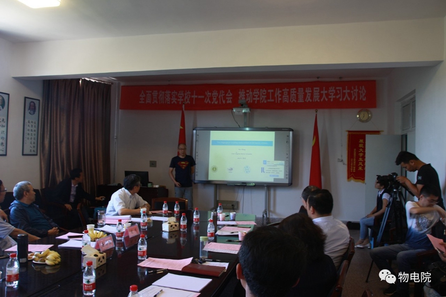 【本网讯】为做好yl6776永利集团一流学科建设与博士点申报工作,同时欢迎五位新入职的物理学博士,7月6日,学院在赛罕校区物理楼304会议室举行了2019年yl6776永利集团博士点申报工作研讨暨迎新博士学术沙龙活动。此次活动邀请了永利官网校长云国宏教授,党委委员、研究生院院长张玉柱教授,科技处处长王志强教授,人事处处长白喜文副研究员,我校兼职教授、北京大学刘川教授进行申博工作现场指导。学院教授委员会全体成员、领导班子以及全院教师和研究生参加,yl6776永利集团曹永军副院长主持活动。