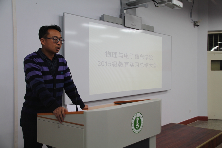 本网讯 2018年11月14日,我院在赛罕校区田楼九共举办了2015级学生“我的肩膀—能挑多重的担子?”主题教育实习总结大会。学院党总支副书记兼副院长张伟、副院长那日苏、实践创新部万欣欣、15级物理学蒙班班主任哈木图、物理学汉班班主任田晓、16级物理学蒙班班主任哈斯朝鲁、物理学汉班班主任孙咏萍、学工办木其尔与15、16级物理系学生参加总结大会,大会由那日苏教授主持。 会上,首先由那日苏教授对学院本次实习工作总结道:本次实习由教务处统一安排,赴巴彦淖尔、赤峰、兴安盟等初中进行实习。每个人都能得到踏上讲台的机会,在学习理论知识的同时通过实践增长学生的教学经验,有利于教学技能的提高与发展。随后由15级物理学蒙班、汉班的六名同学进行现场模拟教学。经过一个月的实习历练,同学们能够用设计精巧的PPT、完整流畅的口语表达将看似“无趣”的物理知识教授给学生,赢得了台下领导老师与同学的阵阵掌声。 本次教育实习总结大会旨在深入贯彻落实全国教育大会和新时代全国高等学校本科教育工作会议精神,提升我院本科师范生教育教学工作。一个多月的实习生活,让同学们在实践过程中得到了成长与锻炼,巩固了基础物理教学的基本技能,更收获了浓浓的师生情谊,深刻体会到了为人师表、教书育人的价值和意义。 图文编辑:新闻专题部 校正稿件:姚锦明 责任审核:萨其尔