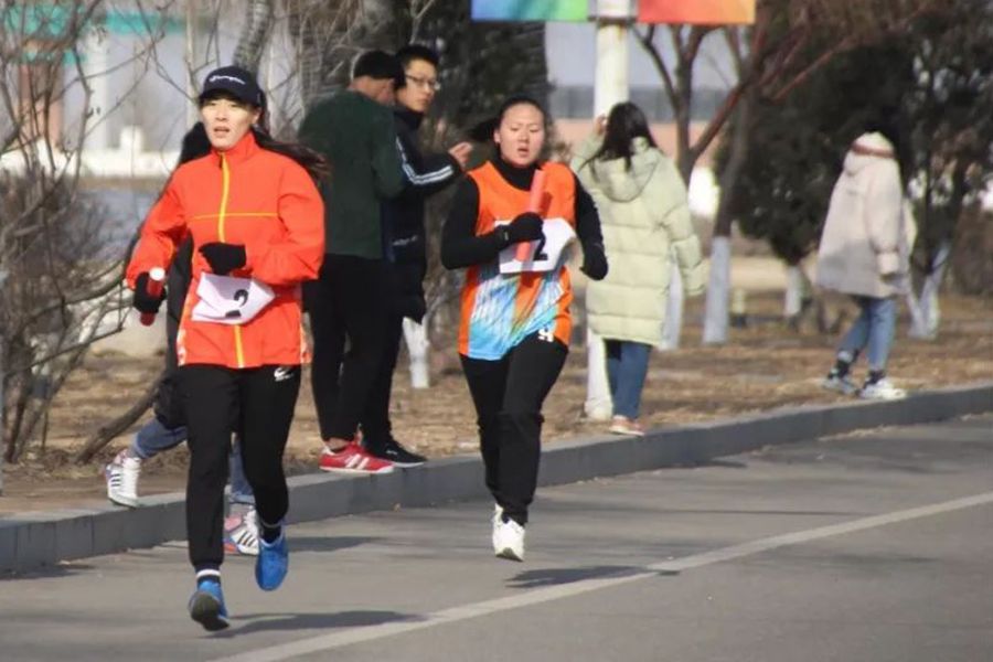 赛前,裁判细心讲解了规则及注意事项。本次比赛为长跑接力,途中设有知识竞答环节,答对一题可以减少本组用时秒数。虽然天气寒冷,却并不能打消同学们的激情。比赛中,我院选手一马当先,以绝对优势稳稳地冲在最前面。而在大题处,他们也以最快的反应速度选出正确答案,继续前行,充分展现了我院学生敢于拼搏、永不放弃的精神。