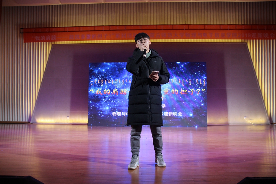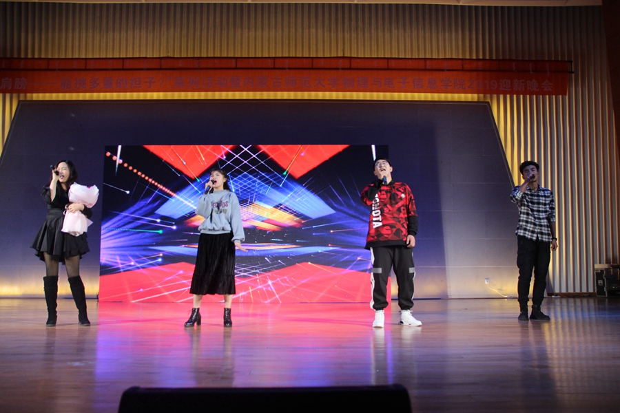 本网讯 为学习贯彻宣传十九大精神、喜迎永利官网第十一次党代会,激发同学们的青春活力与集体主义精神,为大学生活画下绚丽难忘的一笔。2018年12月7日晚七点半,“我的肩膀——能挑多重的担子?”系列活动暨永利官网物理与电子信学院2019迎新晚会于原民族艺术学院报告厅隆重举行。学生招生就业处处长许琳、团委副书记包双成、学生工作处副处长宝贵、各学院团总支、学生工作与就业办公室的老师们、学院党总支书记刘美玲、副院长曹永军、党总支副书记兼副院长张伟、副院长那日苏及学院教职工与学生500余人参与晚会。 灯光熄灭,观众们的目光被别出心裁的先导片所吸引。影片讲述了新生们从备战高考到来到内师大物电院报道的经历,勾起了同学们无数的回忆。我院领导老师以及18级各班班主任也出现在大屏幕上,对同学们表达了最真挚的欢迎以及殷切的期望。随后,一首洒脱奔放的《像风一样自由》正式拉开了晚会的序幕。四位端庄大气的主持人现身舞台中央。他们衣着华丽,意气风发,言语间透露出满满的自信与活力。古香古色的《玉人歌》展现了玉人们柔美的身段和悠扬的歌声,由辅导员王乐和五位同学们的组合完美演绎了新颖别致的歌曲串烧《声之形》;18工程班青春靓丽的少年少女们深情献唱《热勇》,用青春活力点燃花样年华;神秘的墨镜下,身穿蒙古袍的蒙古族女孩们以舞蹈《拥抱明天的太阳》尽情挥洒梦想。优雅别致的乐器弹唱《浮生未歇》带我们回到了樱花纷飞的季节,辅导员宋鑫伟和18级电子信息工程班程雪琪同学的朗诵《党旗颂》深情歌颂了拥有五千年历史的华夏之光。激动人心的抽奖环节来临,摇动的数字锁定了7位幸运观众,而我们也有幸能欣赏获得一等奖的幸运观众献唱《年少有为》。晚会继续,优美动听的独唱《乌兰巴托之夜》使我们仿佛置身于乌兰巴托静谧美好的夜晚;动漫社的coser们友情出演的舞蹈《极乐净土》将全场的气氛推向沸腾的高潮;相声《铃铛谱》以幽默诙谐的语言惹得观众们捧腹大笑;18物理学蒙班的同学们身着华丽精致的蒙古族服装款款走来,向大家展示民族服装独特的魅力与风情;活力四射的舞蹈《dancing our soul》让大家领略了斗舞的精彩激烈;由17级物理学蒙班全体同学以及班主任木其尔献上磅礴的合唱《永远的蒙古》,描绘出一望无垠的碧波草原。最后,领导老师们走上舞台,与演员们亲切合影,为晚会画下了完美的句号。 这是桃李芬芳、欢声笑语的一夜,有舞姿曼妙,有歌声飞扬。有爱的地方就有梦想,有梦想的地方就有希望,希望同学们能立报国之志,艰苦奋斗,全面发展,树立终身学习的理念,为实现中华民族伟大复兴的中国梦而奋斗终身!注:校党委宣传部新闻媒体创意中心马研同学对本文亦有贡献 图文编辑:刘静怡 矫正稿件:姚锦明 责任审核:宋鑫伟