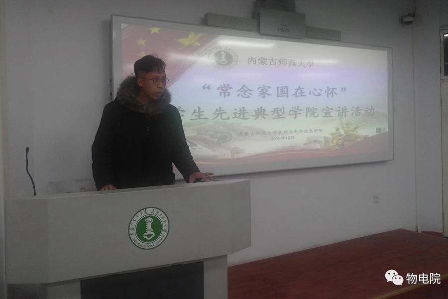2018年12月10日下午,我院于田楼11共教室举行'' 常念家国在心怀''学生先进典型学院宣讲活动,由辅导员宋鑫伟主持,来自我院的七名品学兼优、思想端正的优秀青年进行演讲。此次活动旨在深入学习贯彻宣传十九大精神、习近平新时代中国特色社会主义思想,全面提高大学生综合素质。