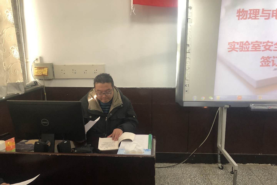 本网讯: 根据关于《进一步加强本科生实验室安全检查的通知》文件要求,为吸取北京交通大学“12·26”较大事故教训,在进一步加强我院本科实验室(机房、实训场所)安全检查工作,落实实验室,安全管理责任,营造平安和谐的教学环境,我院于1月9日、10日对两校区进行了本科实验室、机房安全检查,并在1月15日于物理楼会议室举行实验室安全管理责任书签订仪式,与实验室安全中心负责人签署了二级责任书及三级责任书。