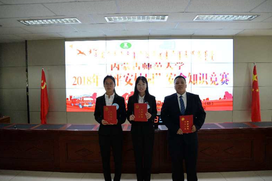 为使学生加强安全防范意识,提高安全防范能力,我校于5月25日下午在赛罕校区信息楼会议室举行了2018年度“平安校园”安全知识竞赛决赛。我院代表队在本次比赛中取得了总成绩第三名的好成绩。