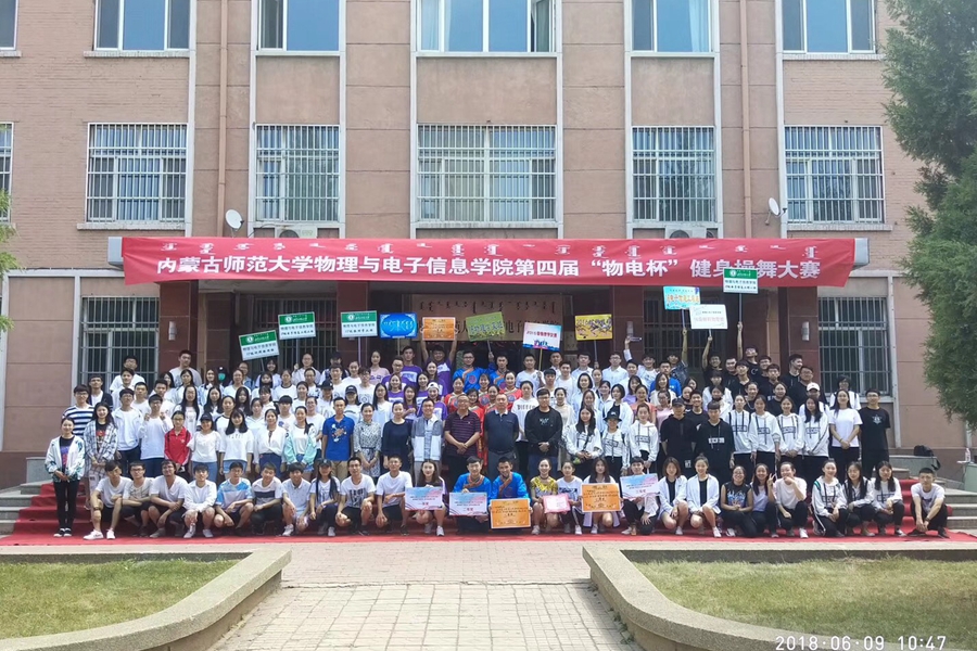 2018年6月9日,我院于物理楼前举办yl6776永利集团第四届"物电杯"健身操舞大赛。本次比赛大一大二共计十支代表队参赛,比赛评委由党总支副书记何小龙老师、团总支书记萨其尔老师,学工办苏日老师、杨艳春老师、那日苏老师及哈斯朝鲁老师担任。