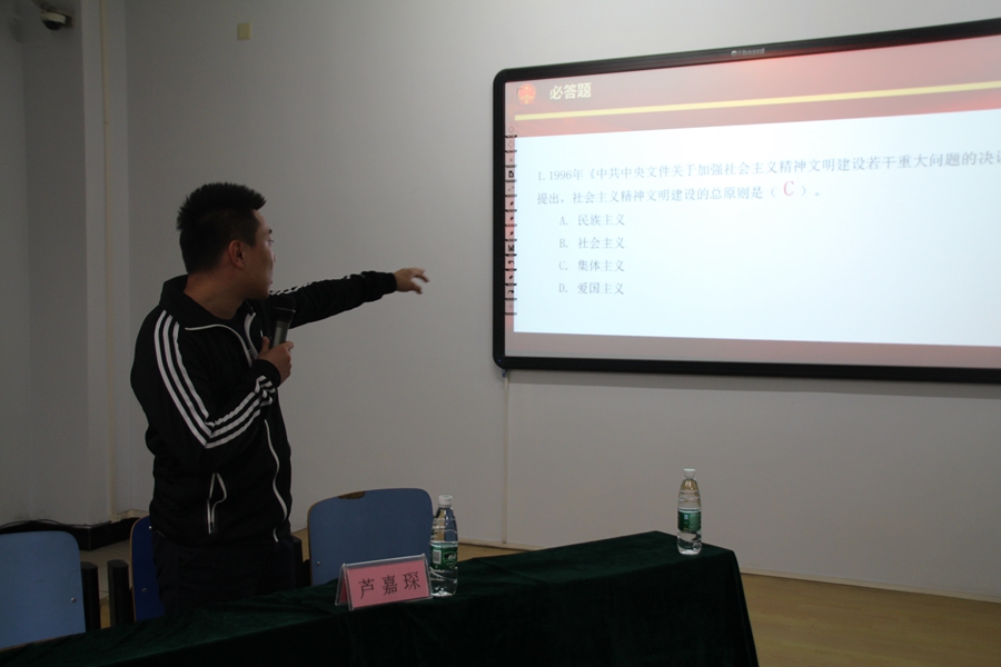 2018年4月26日星期四,我院于行知楼310举办了以社会主义核心价值观主题知识竞赛,学工办卢嘉琛老师担任嘉宾。