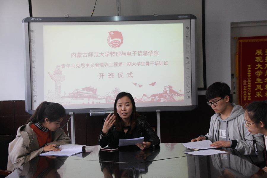 为加强我院大学生骨干、共青团干部及青年知识分子的思想道德修养,yl6776永利集团于2018年3月23日在物理楼会议室举行青年马克思主义培养工程第一期大学生骨干培训班开班仪式。我院团总支书记萨其尔老师主持会议。