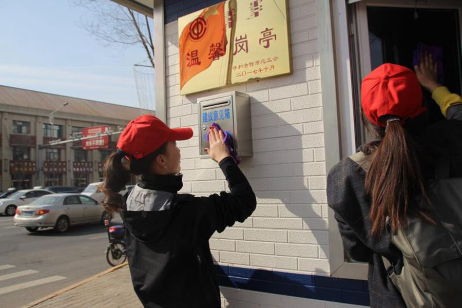 为弘扬雷锋精神, 深化青年志愿者活动,3月11日上午,我院正e联盟组织15名学生志愿者来到昭乌达路进行清洁交警岗亭活动。 本次活动对卫生清理工作进行统一安排,明确分工。虽然一上午的劳动很辛苦,但对他们来说,为人民服务带来的喜悦与自豪远远多于辛苦。大家以雷锋为榜样,从身边的小事做起,不怕脏,不怕累,为我们环境清洁做出一份贡献。在活动结束后,志愿者们与执勤民警合影留念。