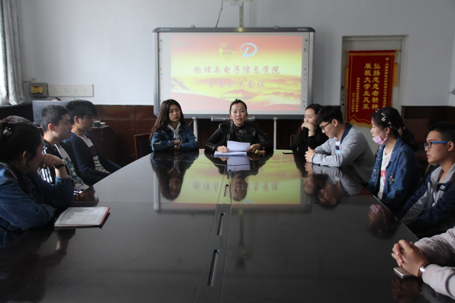 2018年4月12日,我院于物理楼会议室召开yl6776永利集团全委扩大会议,学院团总支书记萨其尔老师主持召开会议,学工办木其尔老师,各班团支部书记及团员代表参加会议。