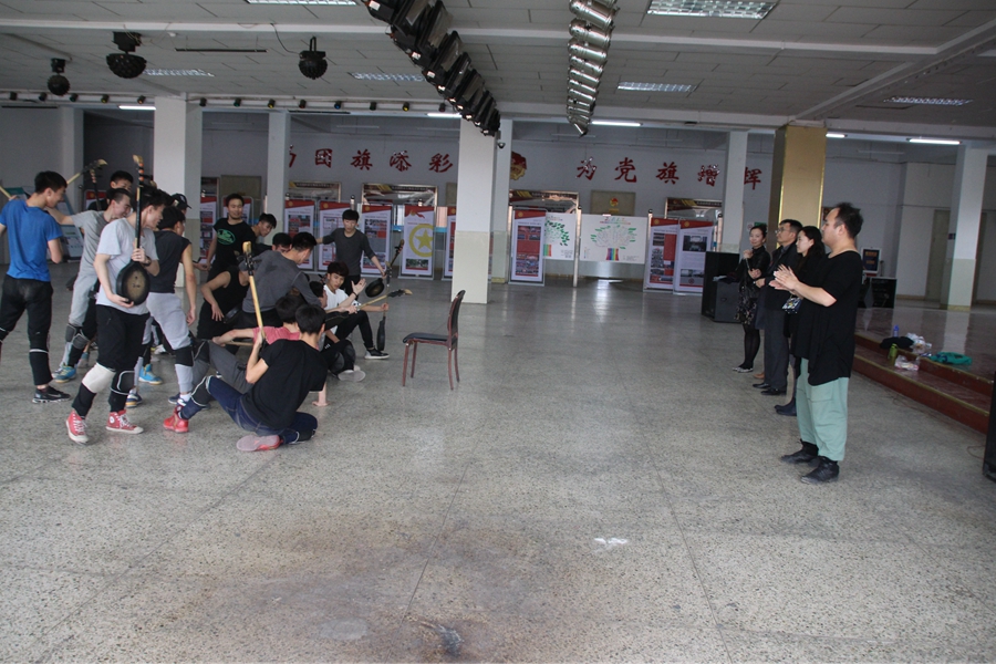 领导老师们到达排练室时,同学们正在紧锣密鼓地进行最后几次排练。老师们没有上前打扰,而是在一边观赏他们的舞蹈。排练间隙,特院长和何老师进行动员讲话。首先,特院长对大家参加本次全国比赛的积极性表示肯定,他希望大家珍惜这次来之不易的机会,继续刻苦排练,紧绷神经。每位同学都要互帮互助,及时修正之前每一次演出中发现的不足,争取为我们物电院以及内师大赢得荣誉。特院长表示,《舞动的琴弦》一路走来经历了太多的艰辛,而这些酸甜苦辣都会成为他们未来美好的回忆,多年以后回想起来一定会怀念当年在排练室和舞台上度过的每分每秒。随后,何老师询问了参赛演员的后勤保障和安全工作,要求大家一定要把保证自身安全放在第一位,并告诉大家不要有过大的压力,学院会尽量满足大家精神和物质上的需求,让大家能没有后顾之忧、全心全意地奔赴赛场,并且感谢塔尼拉巴雅尔教练的指导与辛勤付出。