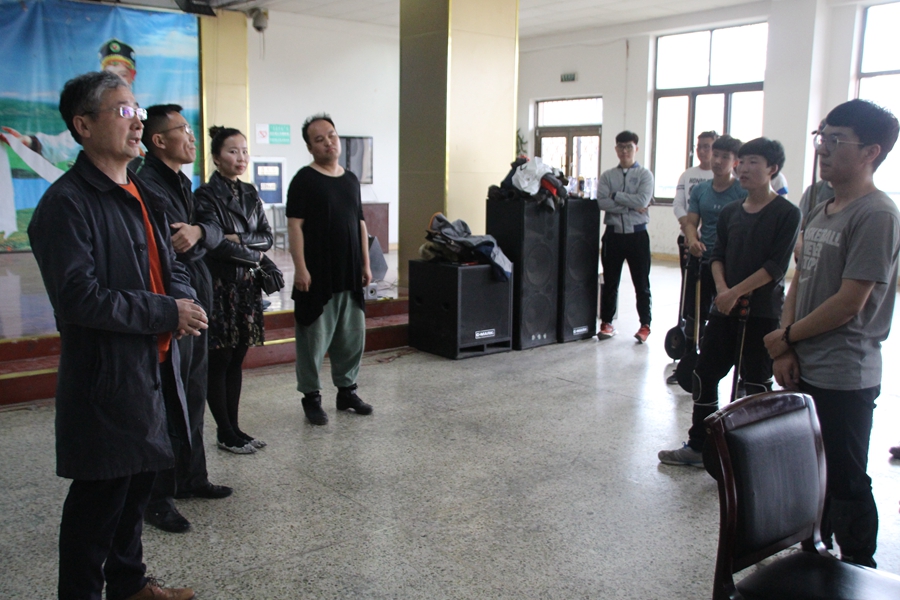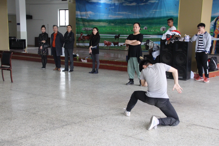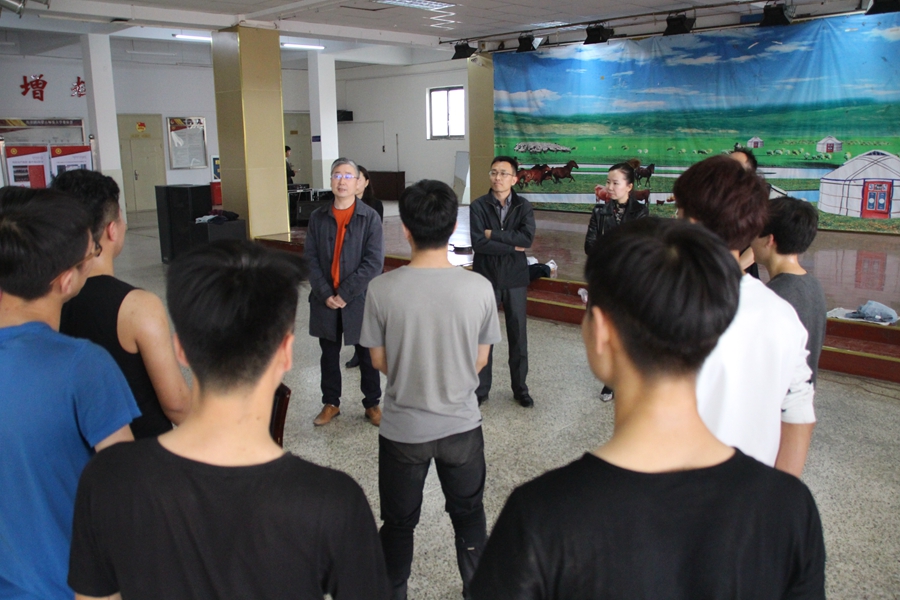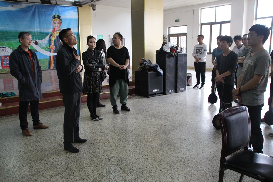 2018年4月12日上午,我院院长特古斯教授、党总支副书记何小龙老师、团总支书记萨其尔老师及学工办木其尔老师来到《舞动的琴弦》排练现场,亲切慰问了即将代表永利官网赴上海参加第五届大学生艺术展的舞蹈演员。