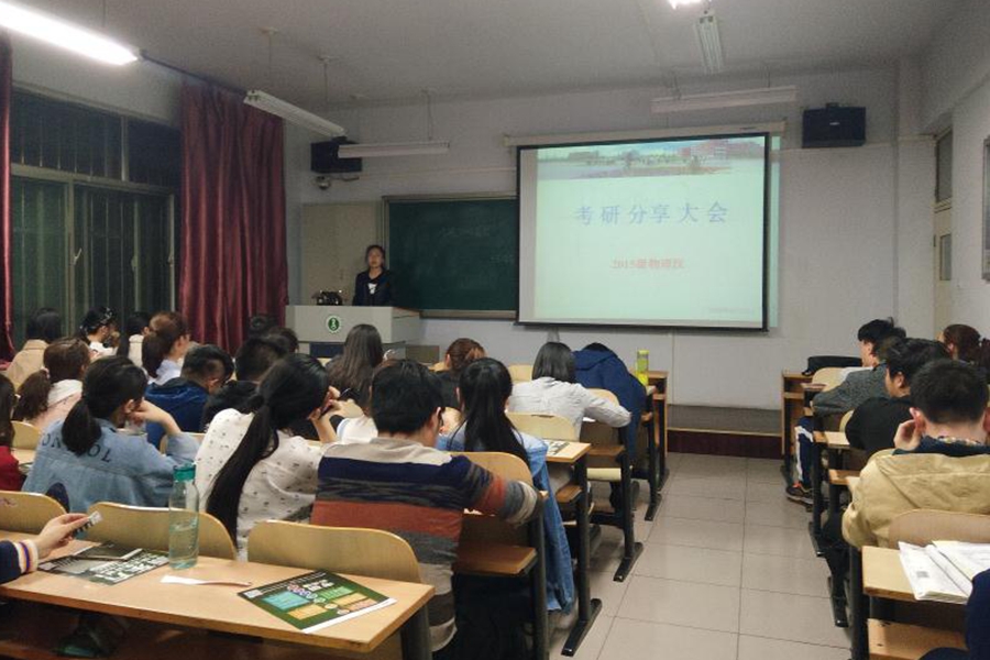 为了丰富校园文化,促进同学之间的交流,指引大三学生找准考研的方向,更快更好的适应未来考研形式,2018年4月13日,15级物理学汉班班主任田晓老师在田楼130教室邀请2014级考研成功、成绩优异、经验丰富的五名学生代表为自己本班的学生传授经验。