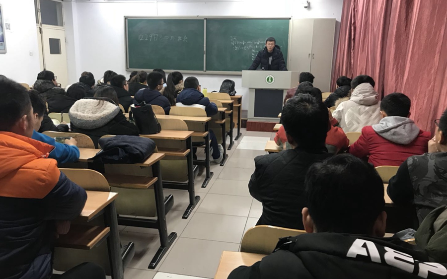 本网讯 2017年12月28日,我院在物理楼会议室召开班主任会议,本次会议由党总支副书记何小龙老师主持,各级班主任参加了会议。 期末临近,我院积极响应学院相关会议精神,召开班主任会议,要求各位班主任近期利用班会时间,提醒学生外出时应注意的一些事项,尤其是交通安全,并转告学生合理安排好外出时间。完善请假制度,避免和考试发生冲突。同时,何老师强调班主任在班会上应向同学传达学校对于严肃考风考纪的各项政策以及关于考试安排程序、考试管理、补考重修等各种问题,并结合以往我校中发生的关于考试出现的各种问题及处理办法,告诫同学们要严肃对待考试,透明考试,诚信做人。 在随后的29日,我院各班班主任于12月28日–29日召开班会,针对严肃考风考纪、学生离校、宿舍安全等问题进行说明,强调学生对以上问题要认真对待,细心复习,做到诚信考试。注意安全问题,落实请销假制度。通过班会,加强了学生对考试纪律,校规校纪的认识。