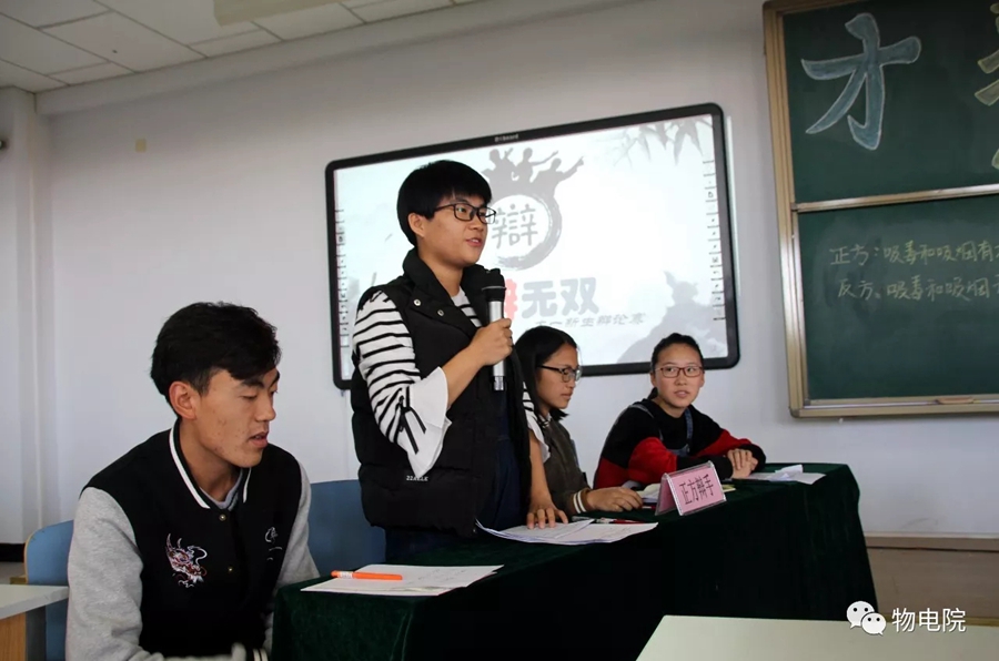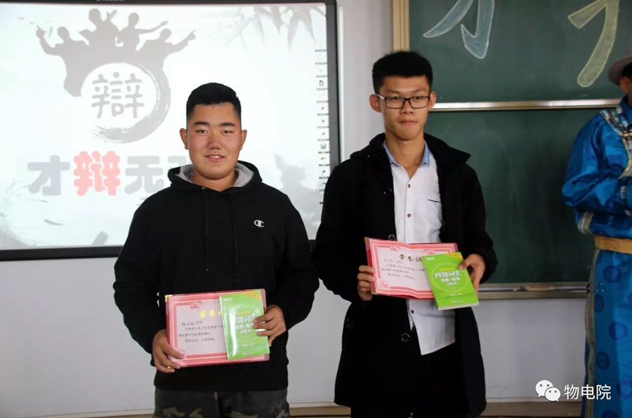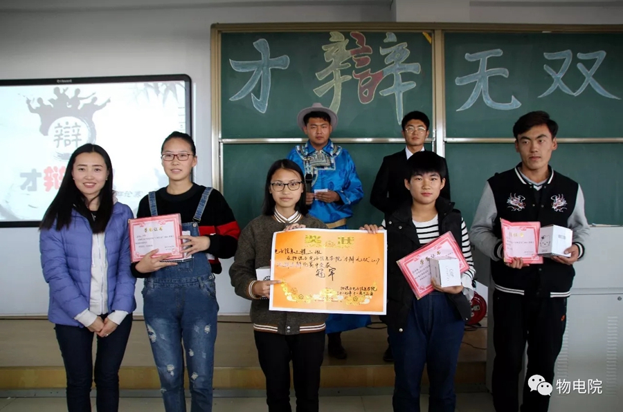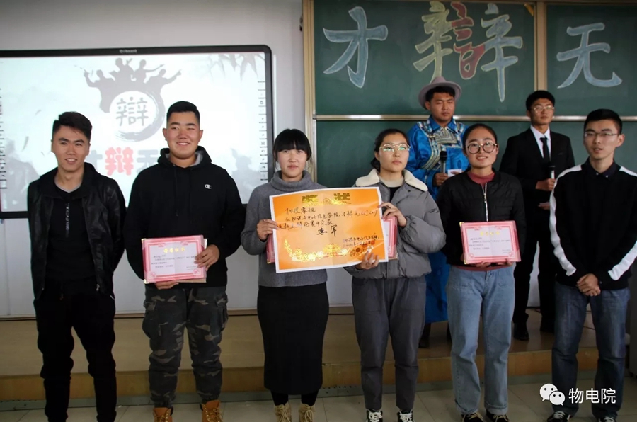 本网讯 2017年11月12日,我院“才辩无双”辩论赛决赛于行知楼310举行。为响应永利官网学生工作处、保卫处发布的《永利官网2017年秋季开学在校学生毒品预防教育“六个一”活动实施方案》号召,本次决赛以“健康人生,绿色无毒”为主题,共设有蒙语组,汉语组三场,分别围绕“禁毒主要靠政府力量还是社会力量”,“禁毒以预防教育还是惩治打击为主”,“吸毒和吸烟有无本质区别”三个辩题展开,学工办木其尔老师、校第十一届辩论赛最佳辩手齐美娟及院辩论队队员担任评委,来自法政学院的校第十届辩论赛最佳辩手苏日娜担任蒙语组特邀评委。 在这扣人心弦的决赛阶段,各支队伍旁征博引,气势如虹,进行激烈的交锋。观赛学生热情参与,认真聆听辩手们的论点论据,自由辩论环节将比赛气氛推向高潮,掌声不断。 最后,经过两周六场激烈的比赛,在评委们公正的评判下,电子信息工程二班荣获冠军,材料物理班获得亚军,物理蒙班获得季军。分别由木其尔老师以及学生会干部颁奖,以兹鼓励。同时,本次比赛设有最佳辩手奖,分别由物理蒙班的那日迈同学和电子信息工程一班的赵兴禹同学获得。本次新生辩论赛圆满地落下帷幕。 本次新生辩论赛不仅锻炼了新生的辩论能力和合作能力,还提高了同学们的思维反应速度、沟通技巧,增强了学生语言组织能力和应变能力。相信他们在未来的日子里,能够让物电院辩论队更上一层楼!