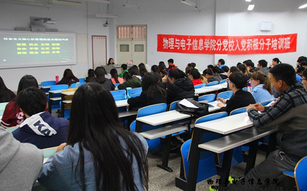 本网讯 2017年3月23日下午,我院于田楼第九公共教室进行了第二次入党积极分子分党校培训课程。本次党课以“社会主义核心价值观与四信四进”为主题,特邀法政学院党总支副书记牛佳老师担任主讲人并由我院团总支书记萨其尔老师主持本次活动。