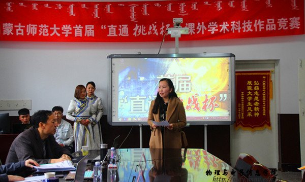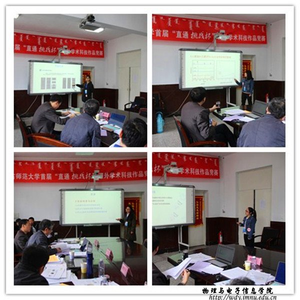 8日上午首届“直通挑战杯”课外学术科技作品竞赛初赛在物电楼会议室举办,项目为自然科学类学术论文。赛制为三分钟作品讲解及评委问答,得分高者进入下一轮。大赛开始由yl6776永利集团团总支书记萨其尔老师主持,党总支副书记何小龙老师致欢迎辞。评委由学院院长特古斯教授、实践创新部主任曹永军教授与朝克夫副教授担任,评分标准为科学性、先进性、现实意义三个方面。比赛过程中,来自化学环境科学学院乌仁道迪的《煤系高岭土/TiO2复合物的制备及吸附性》论文受到了评委的高度评价。当然,在一些参赛的作品里也存在着不成熟的部分,参赛选手们在与评委老师们的请教和讨论中找到了解决办法,受益匪浅。
