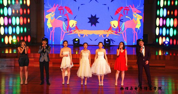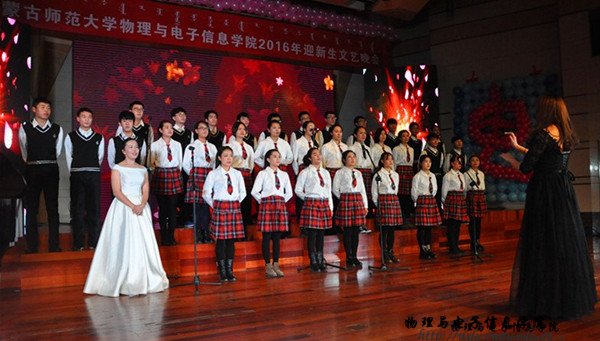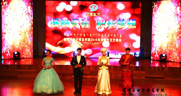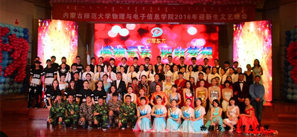 砥砺前行,继往开来,我们一起并肩而行,一路走来,多少过往都化作美丽的故事,在谈笑间,现场一段震撼人心的先导片聚焦起每一位观众朋友们的目光,视频开始用一段唯美的沙画展现了新生们所经历的精彩瞬间。同时,我院领导老师们和16级各班班主任欢迎新生们加入物电院,并表达了对新生们的殷切期望。随后,一缕悠扬的马头琴声,仿佛从深远的原野传来,《云青马》的自由奔腾正式拉开晚会帷幕。四位青春靓丽的主持人现身舞台中央,华丽的服装,走心的话语,无不体现着晚会的细致入微。民族风情浓郁的《希格希日》体现出草原儿女的热情豪放,《金蛇狂舞》的铿锵有力让全场领略了古筝的神奇美感。《十七岁》的我们用歌声诠释青春的气息;《鑫哥正传》用信仰追逐青春的足迹;《black pink》用舞蹈张开梦想的翅膀。年华似水,过往的《同学会》是短暂的美好,在谈笑间,《如此队友》以化为美丽的故事,《马头琴之恋》的岁月在惆怅交融间远去。动感的《bang bang bang》地带,放飞梦与希望的筑巢,燃烧青春不灭的火焰;《淳朴牧羊人》的诉说扣人心弦,回味无穷;尖叫与呐喊声中的《午夜梦幻》完美诠释出我们这个时代的最强音。热烈的情感盛放在时间里,不懈的追求怒放在生命中,《青春赞颂》将无限美好憧憬展现在脑海中,绽放着“物电人”的永不服输的向上精神。