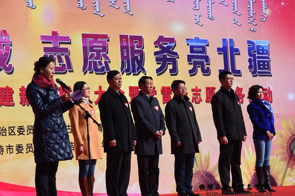 自治区团委书记常青,呼和浩特市团委书记南男出席活动。活动中,青年志愿者代表宣读了全区青年志愿者“青春献礼70载 志愿服务亮北疆”主题宣传服务活动倡议书,倡议全区青年携手传承雷锋精神,参与志愿服务,为自治区成立70周年大庆献礼。随后,与会领导为全区“雷锋号”青年志愿者服务站代表授牌,为“百万青年迎大庆”学雷锋青年志愿者代表授旗,并勉励青年志愿者弘扬奉献、友爱、互助、进步的志愿精神。参加活动的青年志愿者进行了集体宣誓,以青春梦想、用实际行动为建设祖国北疆亮丽风景线作出新的贡献。