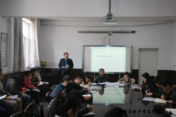 本网讯 2015年11月20日上午,为了配合学校迎接本科教学审核评估工作,我院于物电楼会议室为全体学生会成员及学生干部召开会议。我院党总支副书记何小龙老师,团总支书记萨其尔老师和实践创新部主任曹永军教授出席本次会议。会议中何老师明确指出了迎评的大体方向,简述了迎评的主要内容。同时曹老师为同学们讲解了有关教学评估的知识,在一相关些细节方面做了明确指导。这次评估对我院而言是一次全新的检验,也是一次展示风采的机会,所以需要同学们从本质上认识到评估的重要性,并且以身作则,起到学生干部的带头作用,为物电为师大贡献一份绵薄之力。