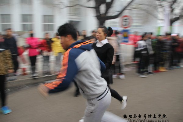 本网讯 2015年12月9日上午,我院组织阿亚拉格,宝吉如嘎等十六名队员参加校级“纪念129抗日救亡运动”的接力比赛。12月9日对我们学生来说是一个特殊的日子,这天是学生掀起爱国运动的标志。赛前,按照比赛规则,将参赛队员分为两组:学院队和学院学生会队。在接力比赛中,我院选手们都热血激昂不畏寒风凛冽,在跑道上展现着物电人独特的风采,最终获得第三名的好成绩。他们是青春的领跑者,是中华民族的强大支柱。在当天晚上,我院组织大一全体同学在田楼九共观看战争影片《智取威虎山》。通过这样的活动,使我院与其他学院之间架起了友谊的桥梁,增进了情感;同时,我院各个年级的学生也彼此熟悉,团结互助,更加增强了同学们的爱国励志情怀。