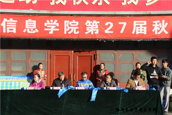 在赛场上,运动员精神抖擞 ,竭尽全力的展现自己的风采。跳高运动员的轻盈 ,跳远运动员的矫健,铅球运动员的力量,短跑运动员的速度,长跑运动员的毅力等无不为运动会增光添彩 。在场下学生会工作人员相互合作,积极配合,为院运会贡献出自己的一份力量。经过激烈的角逐,13工程二班获得团体总分第一名,13物理蒙班获得团体总分第二名,14工程班和15物理蒙班并列团体总分第三名。获得精神文明奖的班级有13工程一班、14材料班和15工程班。13物理蒙班和15物理汉班荣获最佳入场创意奖。最佳人气奖由14科技班获得。在闭幕式上,各领导老师对优秀动员,优秀班级进行颁奖,对没有获奖的运动员和班级进行了鼓励,并由何老师致闭幕词。届时我院第27届秋季运动会圆满落下帷幕。